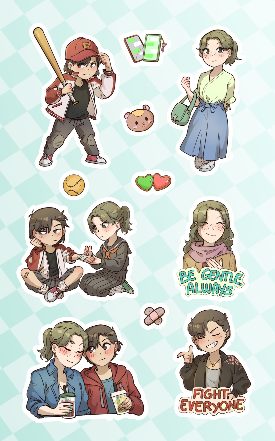 A sticker sheet featuring Yukumi and Aruka from Kiss it Goodbye, by Ticcy.