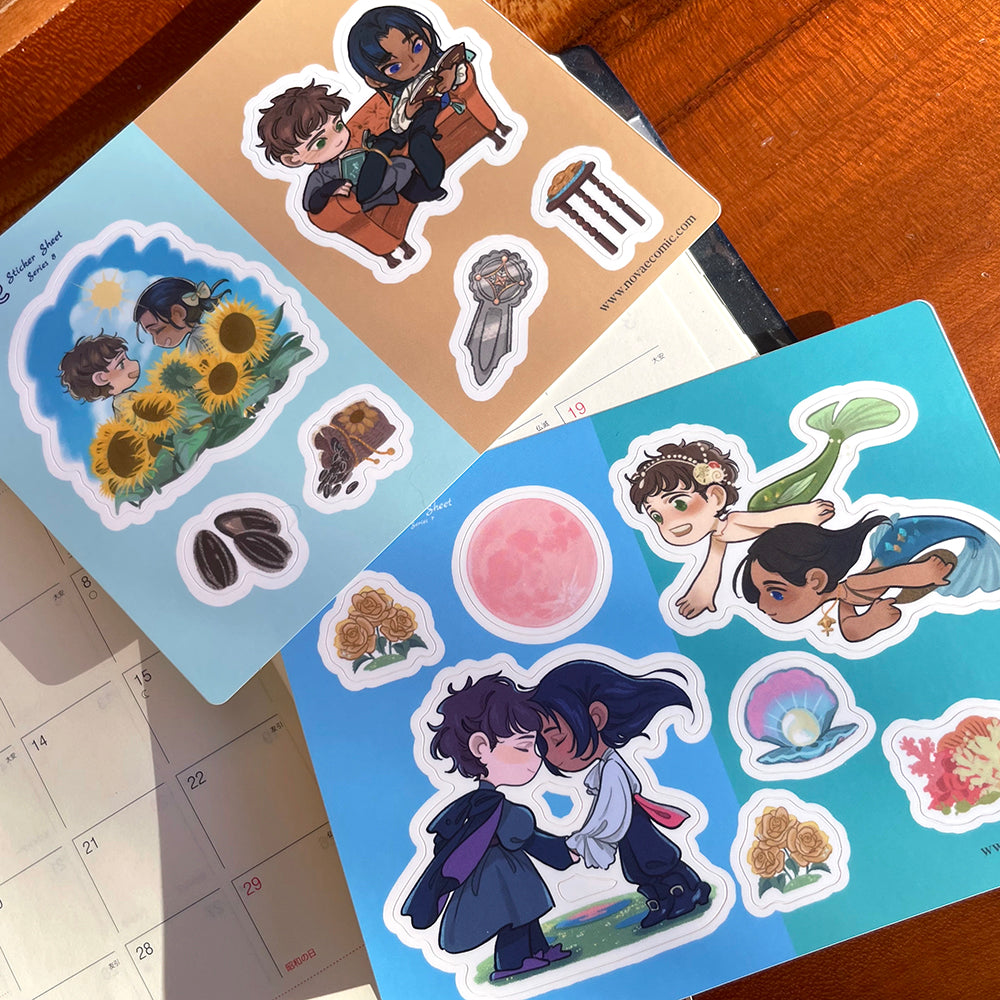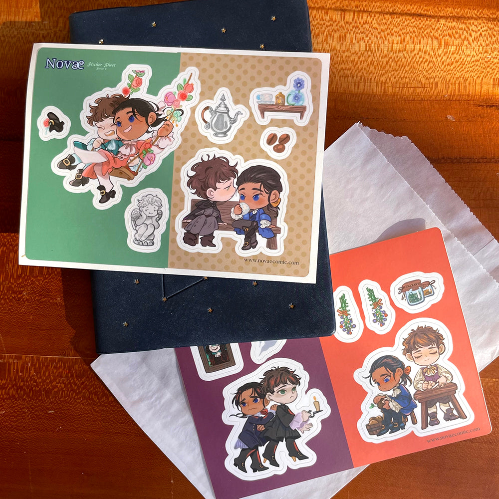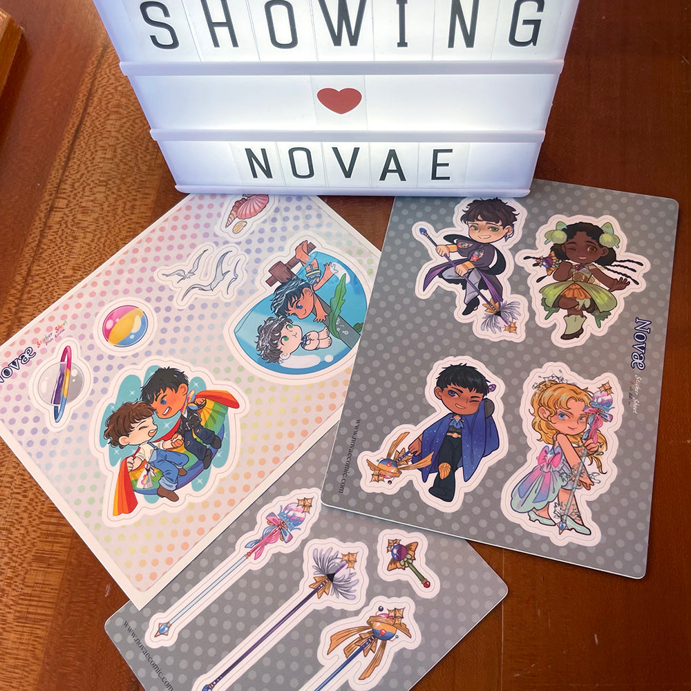 Three sticker sheets featuring characters from Novae, plus cute little props! Perfect to put in...